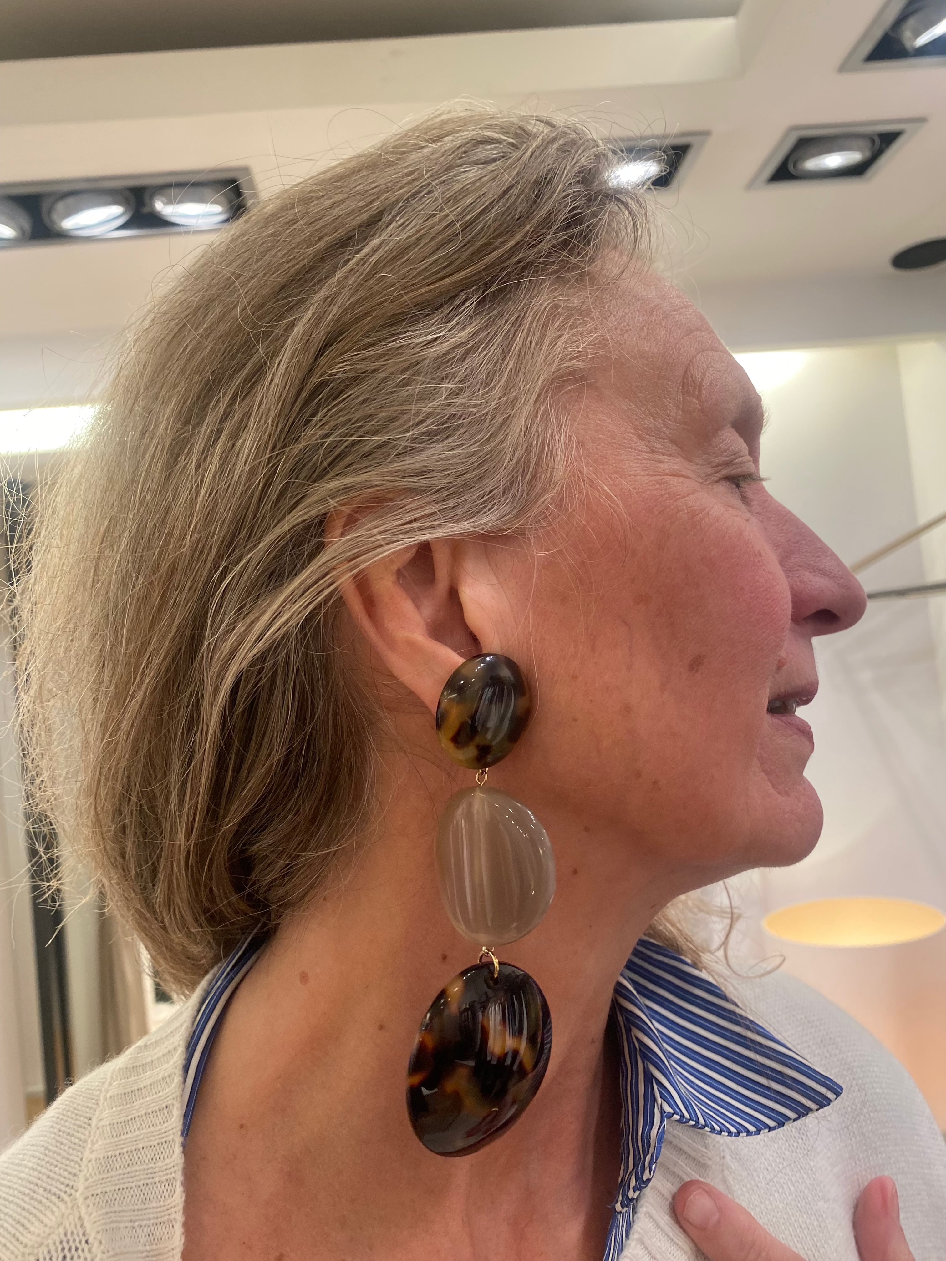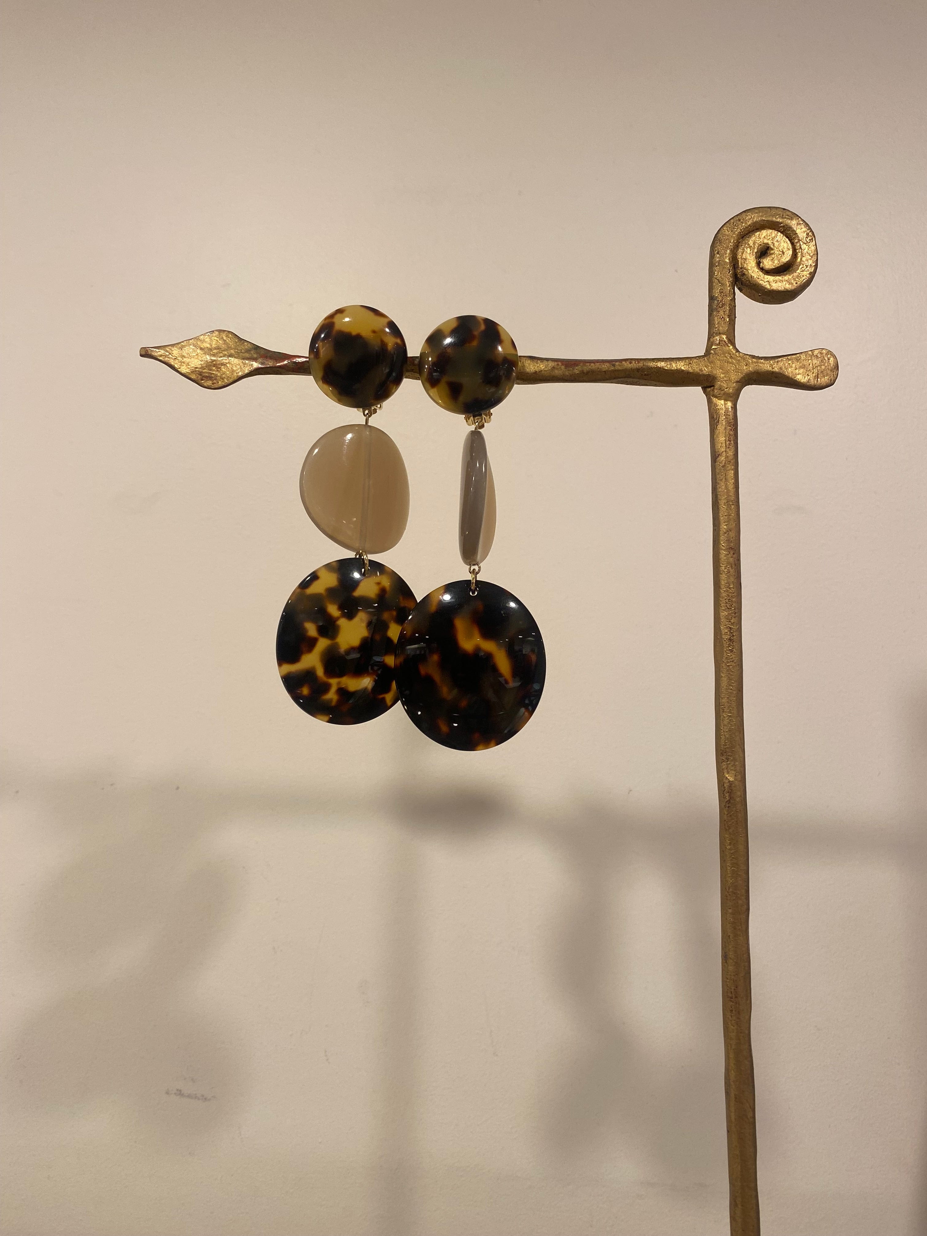Boucles d’oreilles Francine Bramly à clips – Élégance française en résine façon écaille